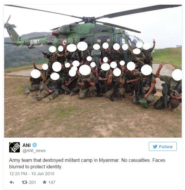 ANI had clearly stated in their tweets that the photos were that of the Indian Army team that carried out the Myanmar strike on 9 June. Hindustan Times quoted ANI multimedia head Sanjay Mehra as saying, “The image was duly authorised for use by the ADG PI (Additional Directorate General of Public Information) of the Army, with the specific request that the faces of the persons be morphed, which we duly did before release.” The ADG PI rejected Mehra’s statement and a senior officer said, “No such permission was given by us. We did not release any pictures of our special forces involved in the operations, nor do we intend to do so,” according to the Hindustan Times. It was later clarified by an Army officer that the Army had released these images from 2009 to be used as “representational photos.” “The Army did not mean it was an operational picture,” The Hindu quoted the officer as saying. The incident also brought to light how media houses sometimes throw caution to the wind in the excitement of being the first to release/publish a photo or a story without a proper check on the source of the story/image. Sometimes, it just makes sense to wait.