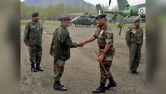 Jammu: While the whole country talked about his stunning disclosures and latest confrontation with the government, Army Chief Gen VK Singh paid a quiet visit to the Vaishno Devi shrine in Jammu and Kashmir. [caption id=“attachment_259291” align=“alignleft” width=“380” caption=“Chief of Army Staff General VK Singh being received by GOC-in-C, Northern Command, Lt Gen KT Parnaik as GOC 15 Corps Lt Gen SA Hasnain looks on, in Srinagar on Tuesday. Singh is on a visit to the Valley. PTI”]