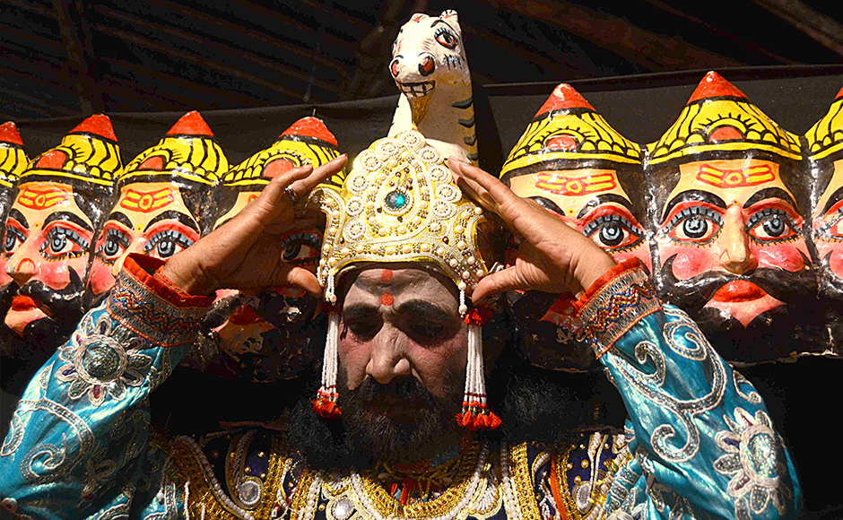 Artist Swami Lekhram Sharma gets ready to play Raavan in the green room before the Ramleela performance. The Sahitya Kala Mandal celebrates Navaratri by staging the Ramleela during the nine day festival. Solaris Images
