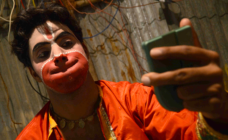The artist who plays Hanuman prepares for the Ramleela performance at Azad Maidan, Mumbai. Solaris Images