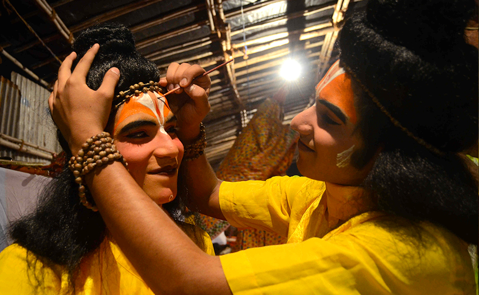 Artists playing Ram, Lakshman, Raavan, Hanuman gear up for a Ramleela performance