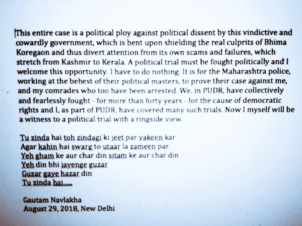 Bhima Koregaon raids latest updates: Lashing out at Congress president Rahul Gandhi for his tweet calling the arrested as “human rights activists”, BJP spokesperson Sambit Patra said, “Today, Congress has reached a new low. The Congress is standing with the Left-Wing Extremists. Naxals are Naxals when you arrest them, but they are human rights’ activists when we arrest them?” At a press conference, the Pune Police said that the activists arrested for suspected Maoist links had shown a strong intolerance to political system. The Supreme Court ordered that they be placed under house arrest till 5 September. During the hearing the counsel appearing for Maharashtra, raised the issue of maintainability of the plea, saying a “stranger” cannot seek relief for the activists who have already approached the high courts. The Maharashtra government told the Supreme Court on Wednesday that “strangers” cannot seek relief for activists who have already approached the high court. The plea in the apex court is by historian Romila Thapar and four other human right activists against the arrest of Left-wing activists by Maharashtra Police for suspected links with Maoists. In the pune court, the public prosecutor has told the court that Varavara Rao, Arun Ferreira and Vernn Gonsalves were members of the CPI Maoist. Delhi High Court has questioned the credibility of the witnesses to Gautam Navlakha’s arrest. Three of the five Left-wing activists, who were arrested yesterday by Maharashtra Police in connection with its ongoing probe into suspected Maoist links to an event held in Pune, have reached the Pune district court. Telugu poet Varavara Rao, and activists Vernon Gonsalves and Arun Ferreira were brought to Pune late on Tuesday night. The Delhi High Court has deferred the hearing on the transit remand of Gautam Navlakha for 3.30 pm today. The hearing was postponed because the petitioner’s lawyer was not present. The court said that they will hear the plea today itself even if they have to sit beyond the usual working hours. The Delhi High Court has started hearing the plea against arrest of journalist Gautam Navlakha. The Division bench composed of Justices S Muralidhar and Vinod Goel of the Delhi High Court is hearing the matter. Gautam Navlakha has issued a statement ahead of the hearing in Delhi High Court. He said that this is a political ploy by this vindictive and cowardly government to shield the real culprits of the Bhima Koregaon violence.