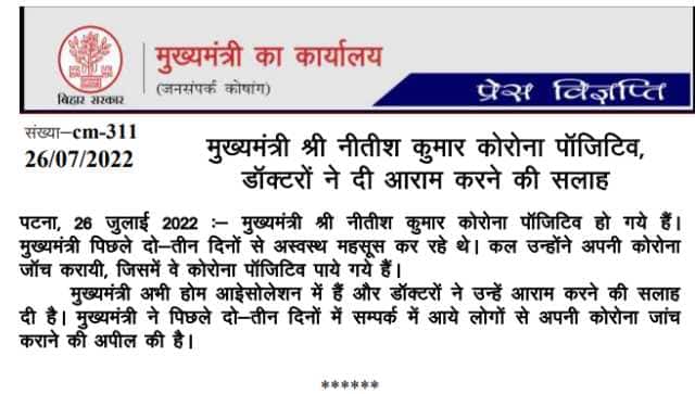 It is for the second time this year that Nitish Kumar has tested positive for COVID-19. He was earlier tested positive in the month of January