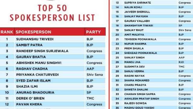 • BJP's Sudhanshu Trivedi leads e4m 50 top Party Spokespersons list, five non-BJP spokies in top 10