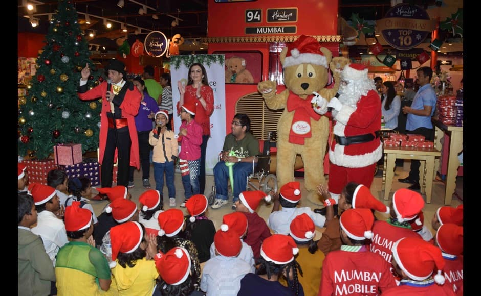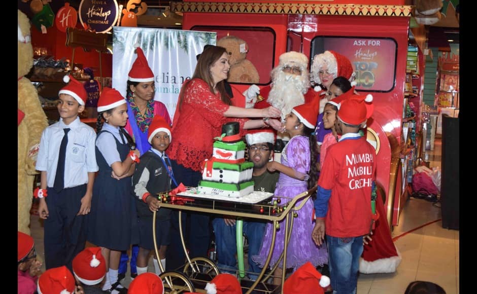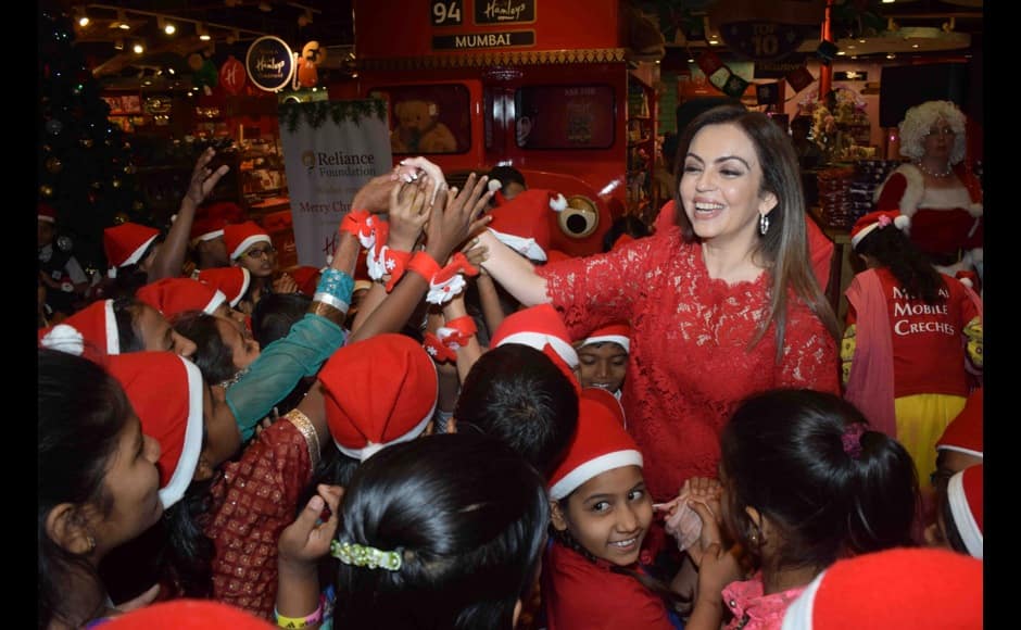 Nita Ambani, chairperson, Reliance Foundation, celebrates Christmas with underprivileged children, at Hamleys in Mumbai on 23 December 2015. Sanket Shinde/SOLARIS IMAGES[/caption]