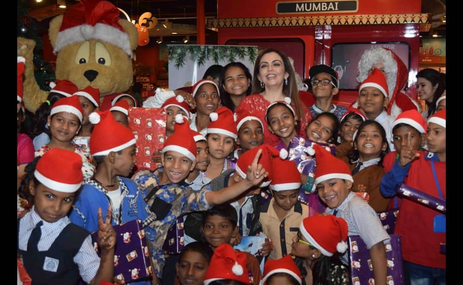 Nita Ambani, chairperson, Reliance Foundation, celebrates Christmas with underprivileged children, at Hamleys in Mumbai on 23 December 2015. Sanket Shinde/SOLARIS IMAGES[/caption] [caption id=“attachment_2557340” align=“alignleft” width=“940”]