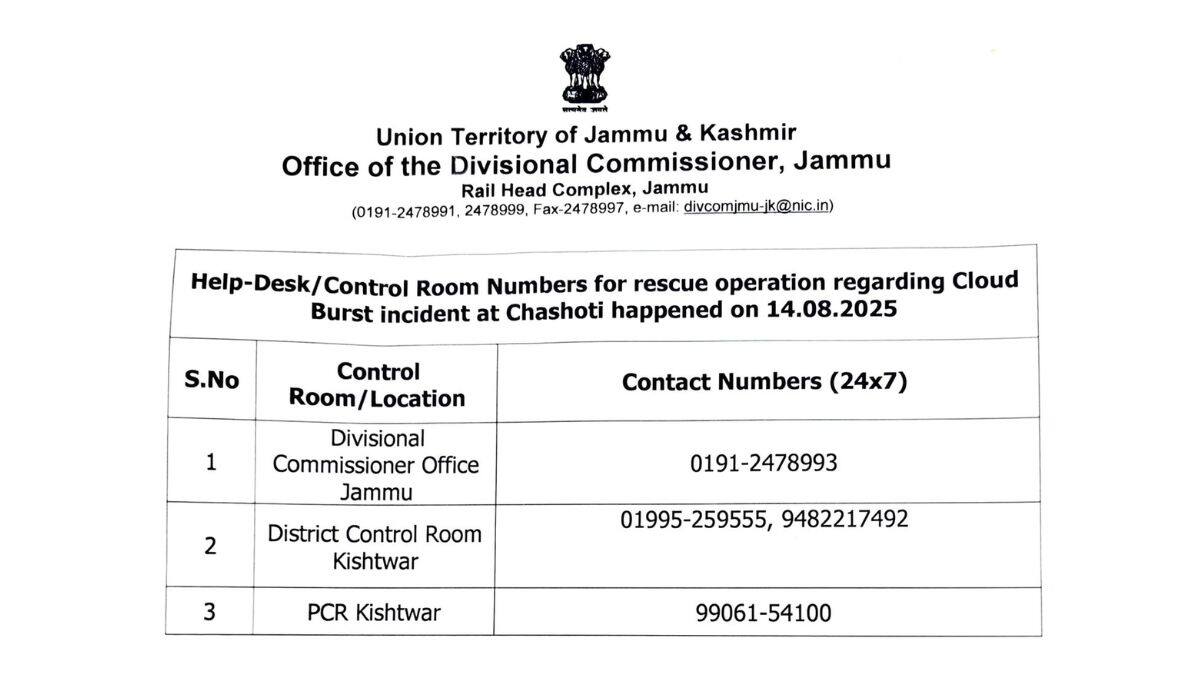 The Jammu and Kashmir government has issued the following helpline numbers:
