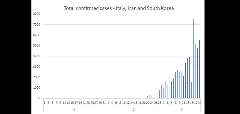 There is a nifty little dashboard on COVID-19 timelines, which I would encourage you to check out. By taking the data from this dashboard week wise in March, I came up with this: