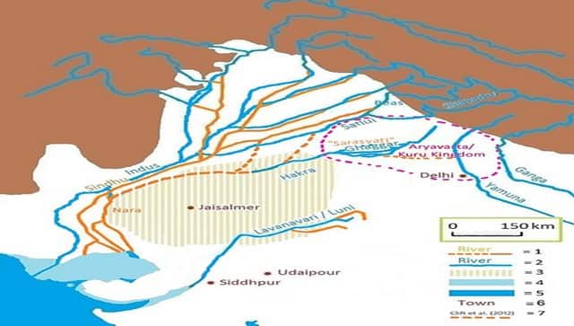 Map showing the Kuru kingdom as described the Mahabharata[/caption] From the Vedic texts and other ancient literature, British era reports, and post-Independence archeological excavation reports until the 1970s, it is clear that the Saraswati river was accepted as a reality and known to have existed that later disappeared for various reasons (which includes the movement of the Sutlej waters, and possibly Yamuna too, away from Saraswati, a topic too vast to be discussed in this article). So, now the question is, what went wrong from the 1980s? [caption id=“attachment_10213801” align=“alignnone” width=“640”]