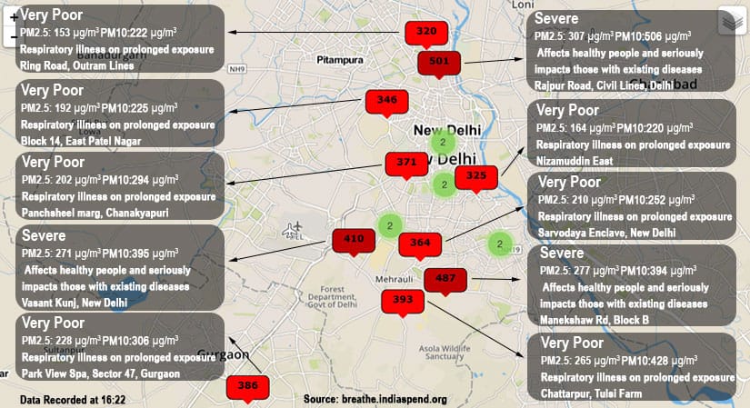 . Figures available with IndiaSpend, a data journalism initiative, show that the scheme which is mainly aimed at curbing the increasing pollution levels, has not shown the desired results so far. As per the data collected at 4 pm on Saturday, the pollution level on the Ring Road, Outram Lines was ‘very poor’ at PM2.5:153 µg/m³PM10:222 µg/m³ with a threat of ‘respiratory illness on prolonged exposure’.µg/m³ stands for micrograms per cubic metre. Areas like East Patel Nagar, Nizamuddin East, Chanakyapuri including the satellite city of Gurgaon shared a similar threat to health. Pollution in the South Delhi locality of Vasant Kunj and the Rajpur Road in Civil Lines was even worse as the level in both these areas were marked as ‘severe’. At 4 pm, the Rajpur Road in Civil Lines had a pollution level of PM2.5:307 µg/m³PM10: 506 µg/m³. IndiaSpend warned that ‘severe’ level of pollution ‘affects healthy people and seriously impacts those with existing diseases.’ Delhi Chief Minister Arvind Kejriwal had on Friday said that he was overwhelmed by the response of the people towards the 1-15 January trial run that seeks to allow on roads only odd-numbered four-wheeled vehicles on odd dates and even-numbered ones on even dates without any restrictions on Sundays. “I am truly overwhelmed. There are very few even numbered cars on the roads,” Kejriwal said. Responding to the initial success on Friday, Delhi Transport Minister Gopal Rai had said: “It is more successful than what we had anticipated.” However, even with the overwhelming compliance of the odd-even scheme the pollution data reveals a different story and it should truly concern not the Delhi government alone but also those who live in the National Capital Region. [caption id=“attachment_2568522” align=“alignleft” width=“825”]