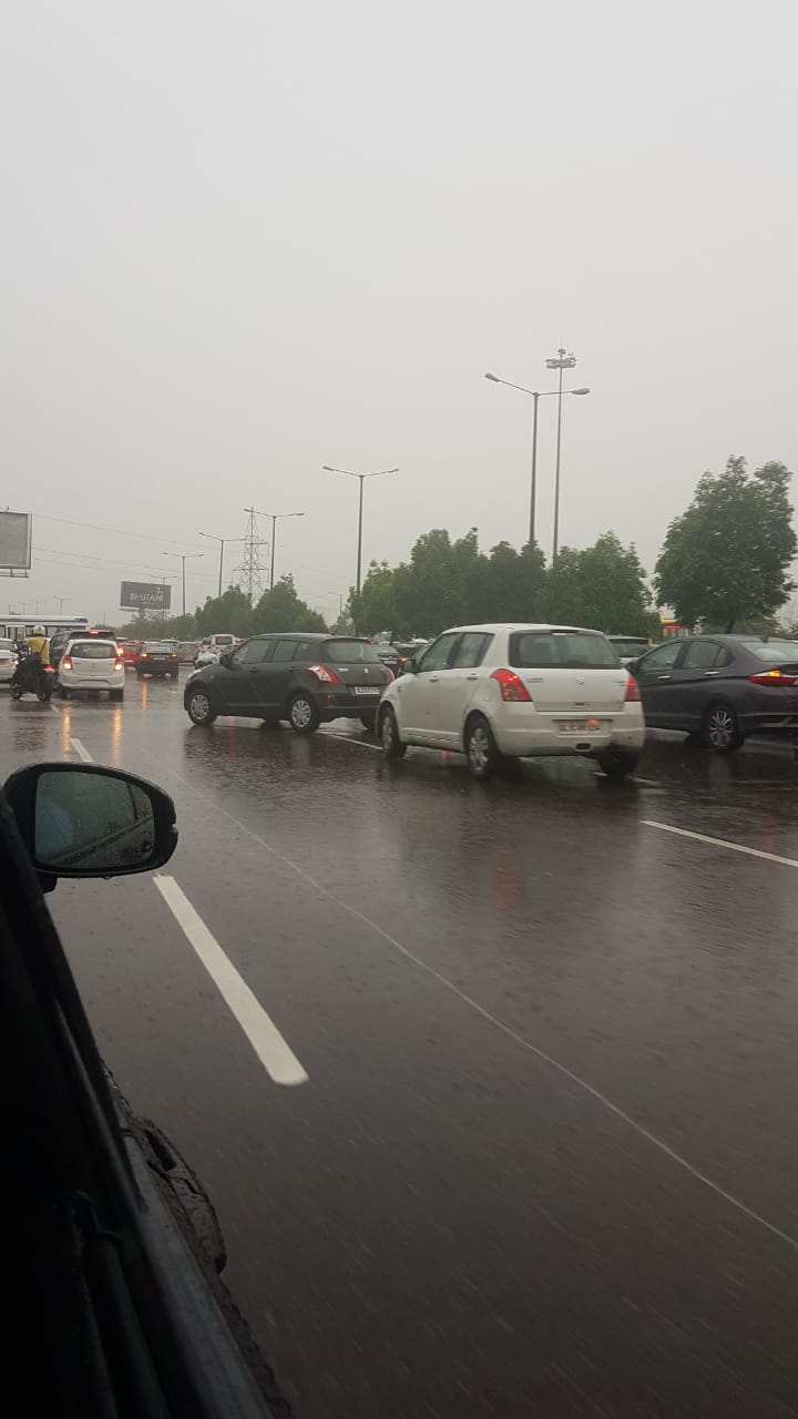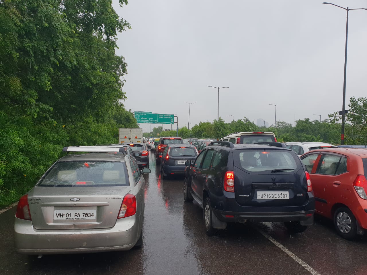 Delhi rains latest updates: A road in Ghaziabad’s Vasundhara area caved in causing the entire area to be out of bounds for days as it will take quite some time for the road to be completely repaired. The city recorded 208.4 millimetres of rainfall so far. Heavy rains lashed Delhi and the National Capital Region on Thursday morning bringing respite from the humid conditions but causing waterlogging in various parts of the city. Weather officials predicted more spells of rain throughout the day. Till 8.30 am, the city recorded 4.6 millimetres of rainfall in the last 24 hours and the relative humidity was 93 percent. The minimum temperature on Thursday was recorded at 26 degrees Celsius, two notches below the season’s average. The maximum temperature was expected to hover around 34 degrees Celsius. It was heavily clouded in the morning and it started raining at around 7 am. “The sky will remain generally cloudy throughout the day. There may be spells of light to moderate rain in most parts of the city,” an India Meteorological Department (IMD) official said. Wednesday’s maximum temperature settled at 32.2 degrees Celsius, two notches below season’s average, while the minimum temperature was recorded at 28 degrees Celsius, a notch above the season’s average. On Wednesday also the city had received heavy showers. The maximum temperature settled at 32.2 degrees Celsius, two notches below the season’s average, while the minimum was recorded at 28 degrees Celsius, a notch above the normal, said a Meteorological (MeT) department official. The city received intermittent rainfall throughout the day. The humidity oscillated between 88 and 56 percent. The Met office has forecast overcast skies, along with the possibility of few spells of light to moderate rains, for Thursday. “The maximum and minimum temperatures are expected to hover at 32 and 26 degrees Celsius respectively,” the weatherman said. With inputs from agencies