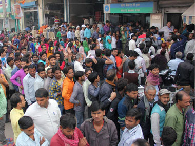 People outside a bank in Gurugram. File photo. PTI[/caption] Currently, the ATM withdrawal limit from savings bank accounts stands at Rs 2,500 a day, but some ATMs are dispensing only Rs 2,000 notes or Rs 100. To identify people who have already exchanged money and reduce the chaos at banks and ATMs, banks were directed to start applying indelible ink mark on the right hand index finger of customers in select metro cities. As per the Standard Operating Procedure (SOP) for exchanging notes, concerned bank branches and post offices would put indelible ink mark on the right index finger of the customer so as to identify that he/she has exchanged the old currency notes once. However, many banks reported shortage or non-availability of ink, which did not make any difference in improving the situation. On Wednesday, a cash-carrying van was attacked in Assam, killing the driver and three more people. Seventy-year-old Digambar Mariba Kasbe, who was standing in a queue outside a branch of SBI at Tuppain in Maharashtra’s Nanded district, collapsed and died, police said. A 54-year-old bank employee died after he collapsed in a bank branch in Pune during office hours on Wednesday, officials said. According to the