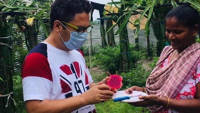 By Gurvinder Singh Abha Toppo resides in Hatighisa village in Darjeeling district of North Bengal, around 20 kilometres from Siliguri city, the gateway to northeast India. Her village is a few metres away from the Naxalbari block that had garnered global attention for the armed peasants’ revolt of 1967. The 45-year-old had worked as a tea plucker in a tea garden for over two decades soon after her marriage in 1995. She earned Rs. 170 per day (approximately Rs. 5000 a month) as wages from the tea garden. But now her income often crosses Rs. 100,000 or more per month thanks to the dragon fruit or strawberry pear – a pink fruit with green scales on the outside and white flesh with black seeds within. It all began in 2013 when Toppo attended an agriculture workshop at the University of North Bengal. “The scientists coached us about the importance of dragon fruit and higher returns. I bought just four saplings apprehending whether it could be of any use and planted them on my land,” she said. “But to my surprise, the flowers blossomed and the fruit came out in the next 18 months. It was delicious. I got around 5 kg of fruit which I sold at around Rs. 400 per kg. It was a handsome profit as compared to my tea garden wages,” Toppo told Mongabay-India. Now, Toppo has over 123 plants of dragon fruit and she sells the fruit and stem cuttings that are used as saplings for the fruit. According to regional agricultural experts, she is the first woman to have started dragon fruit farming in West Bengal. Like Toppo, over 2,000 farmers in Bengal are switching over to dragon fruit cultivation in recent years for income generation. Reports of the immunity-boosting capacity of the plant have escalated its demand during the pandemic. Scientifically known as Hylocereus undatus, the dragon fruit is grown in countries like Malaysia, Thailand, the Philippines, the USA and Vietnam. Dragon fruit sprouted in home gardens, but gradually spread According to G. Karunakaran, Principal Scientist at Indian Institute of Horticultural Research (ICAR-IIHR), dragon fruit production began in India as a hobby in the 1990s but it was restricted to home gardens. “It was not done on a large scale at that time and was restricted to gardening as people were apprehensive about its growth since it is a cactus. It was started on a mass scale by the scientists of North Bengal University in 2013 after they informed the farmers about its potential and income opportunities,” Karunakaran told Mongabay-India. “During some online research, I came across dragon fruit being grown by the scientists of Bangladesh Agricultural University (BAU). I read about its rich properties and higher returns. It seemed to be a good alternative for farmers in north Bengal who face a lack of proper irrigational facilities,” said Amrendra Kumar Pandey, technical officer at Centre for Floriculture and Agri-Business Management (COFAM) in the University of North Bengal that initiated the cultivation of dragon fruit in the state. “We procured around 150 saplings from BAU and distributed them among the farmers and also planted some in our campus. We were sceptical about its growth but the results were overwhelming. The farmers got a good price. We estimate the annual production to have increased to around 600 metric tonnes from 500 kg in 2014,” he said. [caption id=“attachment_9697811” align=“alignnone” width=“640”]  Abha Toppo along with senior medical practitioner Dr. Prem Dorjee Bhutia. Photo by Gurvinder Singh via Mongabay-India[/caption] “Initially, we had started with near about one acre of land scattered in different blocks and agri-zones of north Bengal. After seven to eight years, its area under cultivation has increased to around 200 acres in different parts of north Bengal from small farmers to progressive farmers,” added Pandey. Ranadhir Chakraborty, a professor and project co-ordinator at COFAM says that the fruit can grow in the extremes of temperatures and poorest of soils, but it is best suited for tropical climate. “The dragon fruit is a cactus species that doesn’t require much water and specific soil quality, but pH of the soil should be in the range of 5.5-6.5 (slightly acidic). It also grows well in the desert-like conditions of Mexico. Organic fertilisers are used for cultivation without any pesticides as land is still not polluted with industries in north Bengal. It started on a small scale, but has become a stable horticultural crop in north Bengal,” Chakraborty said. “The gestation period is around 16-18 months. The fruit has important antioxidants like flavonoids, phenolic acid, and betacyanin and is very delicious. Moreover, the fruit has high fibre and promotes the growth of healthy gut microflora. The branches of the trees are cut and used as saplings for further growth. It doesn’t need a regular water supply except during severe summers. The food is harvested from May to October. It’s a high-value crop with a low mortality rate,” he said. Prabha Tirkey Chacko, 50, a farmer who stays at Hansquea village near Badgodra airport in north Bengal says that she started farming in 2016 and has 400 plants of dragon fruits, “I got around 70 kg of fruit from the plants which were then sold for Rs 450 per kg in 2018. I did plantation again last year as COVID-19 led to the surge of demand for the fruit. I am waiting for the yield but buyers have already started thronging my house. The pandemic has hiked its demand because of the immunity-boosting power.” Cost-intensive initially Farmers, however, acknowledge that there is an initial cost involved in cultivating the plant as it is a climber and needs the support of a pole. A cement pole has to be erected that supports the plant. Four plants can be supported on a single cement pole that costs around Rs. 200-250. “It is better to start with a small patch of land and expand once the returns start coming,” suggested Pavitra Roy, 37, a farmer at 