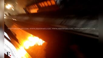 Smoke is seen coming on to the tracks from the huge fire in the culvert. Jay Mehta/Firstpost