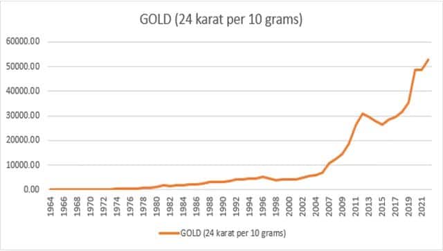 In fact, gold in rupee terms has had a healthy return track record, given the consistent decline of the rupee against the dollar. And the Indian chart for 24-carat gold shows a very secular uptrend over the years, primarily for this reason