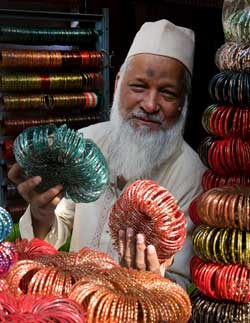 A family in the walled city reminisces of way back when the retinue of King George V and his Queen Mary made its way through Delhi’s Chandni Chowk to the royal durbar for his coronation as Emperor of India in 1911. The Churiwala family’s connection with the British monarchy began in 1877. The family has been in the business of bangles since 1823, says Babu Churiwala, at his glittering bangle store in a South Delhi market. The original Babu Churiwala shop is, of course, in the Mughal-era Chandni Chowk market, nestled below an exquisite two-storey building that stands out from the chaos of shops that surround it. “A canal flowed through Chandni Chowk in those days. That is why this place is called Balli Maran (colony of boat rowers). Even now, if you were to dig deep into the ground below our shop, you will find water,” says the affable khadi-clad great grandson of Abdul Haq, the man who started it all. “In the olden days, bangles were not sold in shops. We would go to the houses to sell bangles. In Chandni Chowk, there used to be havelis. And we would go to the havelis to sell bangles,” says Babu. [caption id=“attachment_153767” align=“alignleft” width=“380” caption=“The original Babu Churiwala shop in Ballimaran, in Delhi’s Mughal-era Chandni Chowk market. Naresh Sharma/Firstpost”]  [/caption] The Mughals were generous patrons. The Nila Gumbad — reportedly Delhi’s oldest Mughal-era ruin, located in the neighbourhood of the Dargah of Sufi saint Nizamuddin Auliya — was a gift to the family. “The Nila Gumbad used to be a Manihari Mahal. (Manihars are a community of traditional bangle-makers). It was given to our ancestors. In those days, our patrons gave us gifts in return for our bangles. There was no money exchange.” From the Mughals to the British Empire to the leading political families of Independent India – the rich and powerful of India’s capital have always been the patrons of the Churiwala family. For former Prime Minister Indira Gandhi’s wedding, it was Babu Churiwala’s father who provided the bangles. Pointing to a black and white photograph, Babu says, “This is my father displaying bangles for Indira Gandhi for her wedding, as Jawaharlal Nehru looks on.” The most testing time for the Churiwala family came with the partition of India in 1947. “Ours was the only shop in Ballimaran that survived. Our shop in Paharganj was gutted. My grandfather was a freedom fighter. He participated in the Quit India movement,” says Babu. “We will live and die here. He who does not love his country, cannot love his mother,” he adds. [caption id=“attachment_153770” align=“alignright” width=“250” caption=“Mohammad Ishaq, seen here with his bangles at Ballimaran’s Babu Churiwala shop, belongs to a family that has been selling bangles for 188 years. Naresh Sharma/Firstpost”]  [/caption] Babu tells of the fashion trends in the earlier days when glass bangles were the rage. He displays bangles featuring a design that is 45-years-old – red glass bangles dotted with gold. “The more you wash them, the more they shine.” When gold was still cheap (till the 1960s), glass bangles were polished with gold. “The tails of squirrel were used to make brushes to paint the bangles gold. All squirrels in Agra at that time were tailless,” he jokes. “There were only five or six colours of bangles back then. Now the demand is for matching and glitter bangles.” Unsurprisingly, Babu Churiwala is much sought after by the rich and famous in the West. “Madonna is a very good customer of ours. We have shipped a lot of bangles to her. She is a big fan of Hindustani items,” he says. From one anna for a dozen to Rs 2,000 for one bangle – Delhi of 1911 is a world apart from the Delhi of 2o11. And through all the drama, the Churiwala family has not only survived but flourished. In their story also lies the story Delhi.