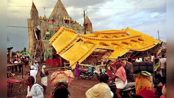 A pandal collapses after heavy thunderstorm at Simhastha Mahakumbh in Ujjain. PTI