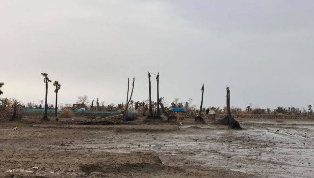 The mercurial waves of the Bay of Bengal are wont to devouring land in the blink of an eye, controlling the fragile lives of the people born on its shores. But despite the evident carnage left behind by Amphan, the villagers agree that it could’ve been much worse had the high tide coincided with the cyclone as it did during Aila over a decade ago. “Had that happened, I don’t think we would’ve lived to tell the tale. All the estuarine regions, Namkhana, Kakdwip, Gosaba — basically the entire Sundarbans would’ve gone underwater,” Bankim Chandra Hazra says. [caption id=“attachment_8438281” align=“alignnone” width=“640”] ![Three families with a total of 16 people are huddled into a single room-hut after losing their homes to the cyclone](https://images.firstpost.com/wp-content/uploads/2020/06/Mousuni-17-640.jpg) Three families with a total of 16 people are huddled into a single room-hut after losing their homes to the cyclone[/caption] [caption id=“attachment_8438291” align=“alignnone” width=“640”] ![Two men pin a tarpaulin sheet to cover their home](https://images.firstpost.com/wp-content/uploads/2020/06/Mousuni-18-640.jpg) Two men pin a tarpaulin sheet to cover their home[/caption] *** As the generators are kickstarted in the market, flickering halogen bulbs light up some parts of the evening-clad island. We make our way to the final stop of Salt Gheri in Mousuni, lying on the western side of the island. Over the last two years, this part of the village — overlooking Sagar Island and the forbidden Jambudwip — has been converted into a seaside retreat with camps and tents for tourists populating the beach. Sheikh Manirul, one of the locals who built the Achievers’ Nest Camp along the beach, is reeling under debt. His one-year-old facility, built on a loan of Rs 20 lakh from neighbours and villagers, has been razed to the ground by the cyclone. Rs 10 lakh is still due, to which the added cost of rebuilding his property from scratch will only prove to be backbreaking. “It was all going so well. I had installed air-conditioners, a dining space, even campfires. So many locals who had migrated out of Mousuni in search of jobs had come back and were employed here too. Now it’s all gone,” he says, informing that repairs will cost north of Rs 2 lakh. Complicating the situation further is the fact that repairmen are hardly available due to the lockdown, as transport in and out of the island is strictly regulated. [caption id=“attachment_8438311” align=“alignnone” width=“640”] ![Scenes of wreckage at Achievers' Nest Camp, Mousuni](https://images.firstpost.com/wp-content/uploads/2020/06/Mousuni-19-640.jpg) Scenes of wreckage at Achievers’ Nest Camp, Mousuni[/caption]