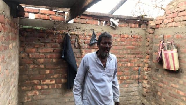 “Not only have our homes been destroyed, but even our fields have also been rendered fallow. Look at them…completely flooded. We have been using them as makeshift toilets for now,” she says. Her father has been struggling for an hour to put up the tarpaulin sheet given to them by the panchayat. “This has become a routine — he wakes up and spends the entire morning covering the roof so we can sleep peacefully at night. Past midnight, the cover gets blown away by the strong winds and rain,” the woman says, before running back into the house.