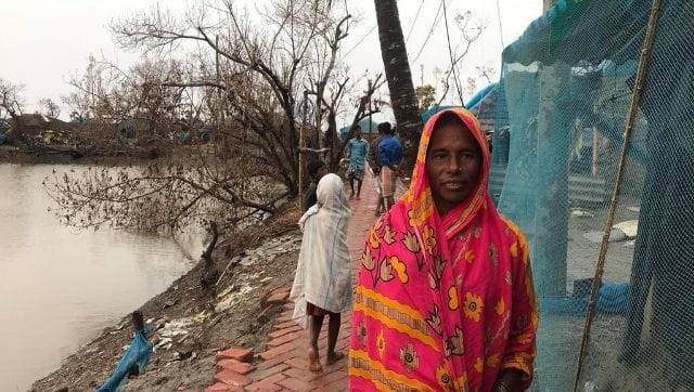 "[H]ere, in the tide country, transformation is the rule of life: rivers stray from week to week, and islands are made and unmade in days. In other places forests take centuries, even millennia, to regenerate; but mangroves can recolonise a denuded island in ten to fifteen years. Could it be the very rhythms of the earth were quickened here so that they unfolded at an accelerated pace?" The idea of change as the only uncontested reality of our corporeal beings is perhaps most poignantly exemplified by the metaphor of the ocean’s turbulent marriage to its coasts. In the above lines from Amitav Ghosh’s 2004 novel The Hungry Tide, based in the Sundarbans, the pathos of this persevering flux is almost palpable. [caption id=“attachment_8438241” align=“alignnone” width=“640”] ![Shaikh Abdullah, 23, built a new home after his house went under water due to the cyclone](https://images.firstpost.com/wp-content/uploads/2020/06/Mousuni-14-640.jpg) Shaikh Abdullah, 23, built a new home after his house went under water due to the cyclone[/caption] [caption id=“attachment_8438261” align=“alignnone” width=“640”] ![Shaikh Abdullah's neighbour waits for his son to return for lunch to a battered home](https://images.firstpost.com/wp-content/uploads/2020/06/Mousuni-15-640.jpg) Shaikh Abdullah’s neighbour waits for his son to return for lunch to a battered home[/caption] When 23-year-old Shaikh Abdullah returned home to Mousuni from Kerala’s Tirur — where he was employed as a construction labourer — four months before the lockdown, the thought of being homeless in the near future had barely crossed his mind. As he and his wife shovel up piling mud to strengthen their new home, ghosts from their past float in the air, as the wind tosses and turns a torn calendar that once adorned the walls of their old home. In Mousuni and its neighbouring villages, hundreds of young men like Abdullah flock to the states of Gujarat and Kerala as labourers, while some even migrate to the Arabian Gulf, supporting their families from afar. “I now run my family by doing odd jobs around the village, since I haven’t been able to go back to Kerala after the lockdown was imposed. We haven’t been getting any help from the government besides the regular ration,” he says. Abdullah and his neighbours lived 500 metres away from the waters; all of their belongings are now buried in the ocean-bed along with the ancient secrets of the forests. Soon after, as we head out of the neighbourhood in a hurry, we are suddenly alerted to the clear blue sky with a burnished sun, and soothing, docile winds. The storm seemed to have mysteriously packed up and fled without leaving a trace, scrubbing every surface clean and dry. At the end of the alley, we spot a man, perhaps in his 60s, standing on the topmost rung of a ladder, struggling to pin a blue tarpaulin sheet to a bald roof, under which stand 16 people. “There are three families living in there,” Khokon tells me, as he beckons to one of the young women to come and speak with us. [caption id=“attachment_8438181” align=“alignnone” width=“640”] ![Broken embankments at the banks of Mousuni by the Bay of Bengal](https://images.firstpost.com/wp-content/uploads/2020/06/Mousuni-11-640.jpg) Broken embankments at the banks of Mousuni by the Bay of Bengal[/caption] [caption id=“attachment_8438201” align=“alignnone” width=“640”] ![Eroded land behind the shattered embankments in Mousuni](https://images.firstpost.com/wp-content/uploads/2020/06/Mousuni-12-640.jpg) Eroded land behind the shattered embankments in Mousuni[/caption]