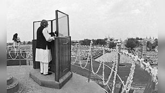 IK Gujral, the then Prime Minister, addresses the nation from the historic Red Fort on the occasion of Independence Day in New Delhi on Aug 15, 1997. Gujral, 92, breathed his last at a Gurgaon hospital on Friday after a brief illness. PTI