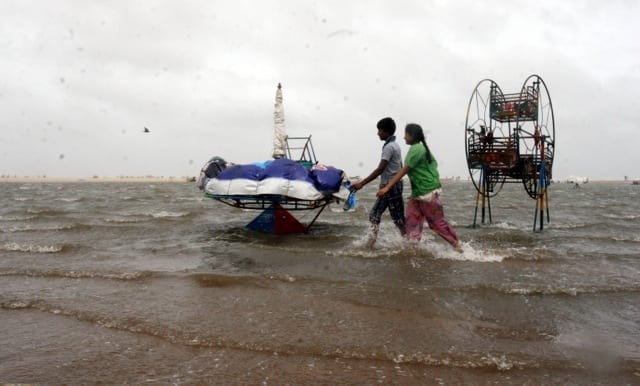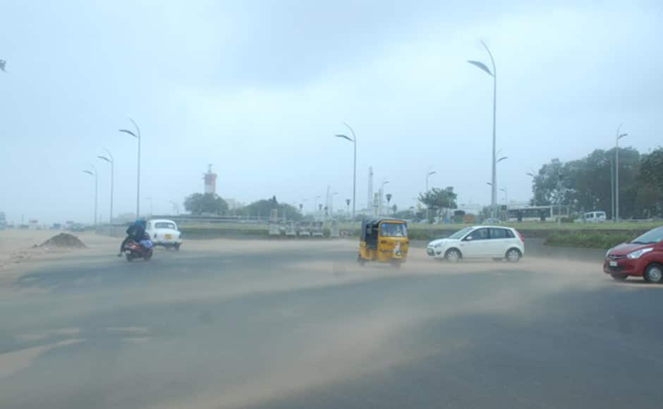 [caption id=“attachment_510128” align=“alignleft” width=“940”]  Water invading the marina beach all the way up to the main road. Firstpost[/caption] [caption id=“attachment_510119” align=“alignleft” width=“940”]  Sea-sand swirling in the wind near the Marina beach. Firstpost[/caption] [caption id=“attachment_510130” align=“alignleft” width=“940”]  The cyclonic winds led to a sea surge that invaded the long sandy stretches of the Marina beach. A mobile “giant wheel” and a shop on the beach are in now in water. Firstpost[/caption] [caption id=“attachment_510131” align=“alignleft” width=“940”]  City corporation workers removing parts of uprooted trees in Poes Garden. Firstpost[/caption] [caption id=“attachment_510139” align=“alignleft” width=“940”]  The post-cycle rains flooded many low-lying parts of the city. Firstpost[/caption] [caption id=“attachment_510145” align=“alignleft” width=“940”]  Despite the warning of the authorities asking the city residents to stay indoors, life appeared to be normal in Chennai. An aerial shot of the traffic on the city’s arterial road, Anna Salai. Firstpost[/caption] [caption id=“attachment_510136” align=“alignleft” width=“940”]  An uprooted city crushed an old Ambassador. Firstpost[/caption] [caption id=“attachment_510144” align=“alignleft” width=“940”]  Boats anchored at the Kasimedu fishing harbour as fishermen stayed away from the sea. Firstpost[/caption]