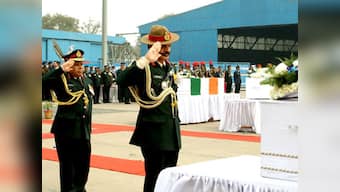 Madurai/Theni: Hundreds of people on Tuesday bid emotional farewell to Siachen bravehearts G Ganesan and S Kumar, whose last rites were performed with full state honours at Chokkathevanpatti in Madurai and Kumanan Kuzhu in Theni districts respectively.[caption id=“attachment_2628814” align=“alignleft” width=“380”] Chief of Army Staff, General Dalbir Singh paying homage at the mortal remains of soldiers, at Palam Airport, in New Delhi on 15 February 2016. Image courtesy PIB[/caption] While Sepoy Ganesan (25) was cremated at Chokkathevanpatti, Havildar Kumar (37) was buried at Kumanankuzhu. The atmosphere at the funeral was highly emotional with friends, relatives and locals bidding tearful farewell. District Collectors of Madurai and Theni - Veeraraghava Rao and Venkatachalam respectively - handed over cheques of Rs 10 lakh each to the bereaved families, the solatium announced by the state government. The government has also assured job to one family member of the two deceased soldiers. Ganesan, Kumar and eight other soldiers, including Havildar M Elumalai of Vellore and Sepoy N Ramamurthy from Krishnagiri of Tamil Nadu, got buried in snow after an avalanche hit their high-altitude post in Siachen glacier in Ladakh on 3 February. One of them, Lance Naik Hanumanthappa Koppad, found alive under the snow, also died on 11 February after battling for life. PTI