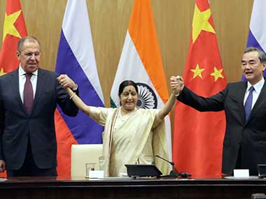 India, Russia and China on Monday jointly condemned terrorism in all its forms and manifestations while calling for effective implementation of existing international commitments to counter terrorism. This was after the 15th Russia-India-China Foreign Ministerial Meeting in New Delhi. In a joint statement, the three countries expressed concern over the threat of weapons of mass destruction (WMDs) falling into the hands of terrorists. They expressed hope that the UN will ensure a peaceful, secure, open, cooperative, stable, orderly, accessible and equitable information and communication technology environment. External Affairs Minister Sushma Swaraj and her Chinese and Russian counterparts, Wang Yi and Sergey Lavrov also called for a peaceful and stable Afghanistan through an Afghan-led and Afghan-owned peace process at the meeting between the three nations. The three affirmed that outer space should be preserved for peaceful exploration and use by current and future generations. The three nations also expressed deep concern over the the continuing conflict in Yemen and the tension on the Korean peninsula as a result of the nuclear and ballistic missile programmes of North Korea. Following is the full text of the press statement by External Affairs Minister Sushma Swaraj at the RIC Meeting: Namaskar, Good afternoon Foreign Minister Wang Yi, Foreign Minister Lavrov and I had discussions today on global and regional issues of common concern in the 15th RIC Foreign Ministers’ Dialogue. The discussions included issues like the challenges of the global economy, increasing terrorism, transnational organized crime, smuggling of drugs, natural and man-made disasters, climate change, and changing political scenario in Middle East and North Africa. [caption id=“attachment_4253433” align=“alignleft” width=“380”]  External affairs minister Sushma Swaraj poses with her Chinese counterpart Wang Yi and Russian counterpart Sergey Lavrov after their tri-lateral meeting in New Delhi. AP[/caption] This is my third RIC meeting as External Affairs Ministers of India, the last being in Moscow in April 2016. These annual talks give an opportunity to us three countries to exchange our mutual views with each other and identify our contributions to international peace, security and development. Our discussions today were focused on four broad cluster of areas, namely, Economic and Developmental issues; Fight against terrorism; Global / Multilateral issues; and, Regional issues. In the recently released Ease of Doing Business report by World Bank India has improved its position from 142nd in 2014 to 100th place this year. I have invited China and Russia for a more intensive trade and economic partnership so that they can take advantage of the economic opportunities available here. I pointed out that the Sustainable Developmental Goals (SDGs) mirror India’s own vision of development. The UN Summit on Sustainable Development held on 25 September 2015 in New York has 17 Sustainable Development Goals (SDGs) and 169 targets with poverty eradication as its overarching focus. Government of India’s initiatives such as Smart Cities, Make in India, Beti Bachao Beti Padhao, Swachh Bharat, Jan Dhan Yojana, Digital India, Skill India, Startup India etc., closely relate to several targets under the SDGs. While discussing terrorism, I put across my view that significant rise in acts of terrorism by terrorist organizations like Taliban, Daesh (ISIS), Al-Qaeda, and LeT directly undermine international peace and security and endanger ongoing efforts to strengthen the global economy and ensure sustainable growth and development. India strongly recommends a comprehensive policy for dealing with global terrorism. The policy should include dealing with extremism, countering religious fanaticism, preventing recruitment of terrorists, disrupting terrorist movements, stopping all sources for financing of terrorism, stopping flow of FTFs (Foreign Terrorist Fighters), dismantling terrorist infrastructure, and countering terrorist propaganda through the internet, but we should not limit ourselves to these only. To combat climate change, I argued that we should ensure a fair implementation of the Paris Agreement based on the principles laid down in the Convention (UNFCCC), especially equity and Common but Differentiated Responsibility. We also had detailed discussion on a range of regional issues. First Russia-India-China trilateral discussions were organized in December, 2016. Welcoming these discussions, I proposed that it’s next meeting to be held in 2018 in New Delhi. I am happy that this proposal has been accepted. I also proposed that the dialogue between RIC young diplomats organized by China in January 2017 should be carried forward. Next year we will welcome young diplomats from China and Russia to India. In addition to our tri-lateral engagement, I had the opportunity to have separate meetings with Foreign Minister Lavrov and with Foreign Minister Wang Yi and discuss our bilateral relations in a comprehensive manner. We had a frank and forward-looking exchange on a wide-range of issues. Foreign Minister Wang Yi and I agreed that we should further strengthen our mutual trust to develop a better understanding between the two parties. And it will be better to meet again and without agenda, which will help us to expand our mutual understanding. Foreign Minister Lavrov and I reviewed our bilateral relations and both of us were satisfied that this is the 70th year of establishing diplomatic relations between us and more than 100 programs were organized in the two countries to commemorate the 70th anniversary. It is well-known that relations between India and Russia are very close and friendly. In the end, I would unabashedly say that this trilateral forum RIC, which was established in 2002, is working very effectively. Its meetings are being conducted regularly and it provides us with a platform where the three major co