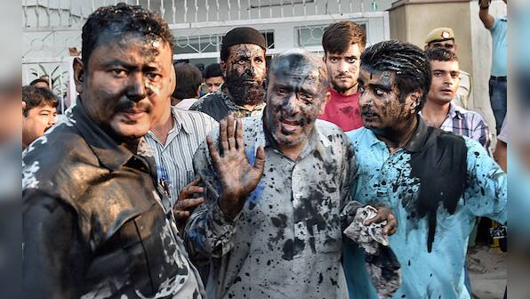 Jammu and Kashmir MLA Abdul Rashid Sheikh’s face was blackened by few activists, allegedly belonging to a right-wing organisation Hindu Sena, at Press Club in New Delhi on Monday