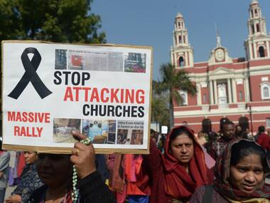 Jabalpur/Mumbai: Amid widespread outcry over an attack on a cathedral and a church-run school in Jabalpur in BJP-ruled Madhya Pradesh, police on Monday arrested six people belonging to a right-wing Hindu group but let them off on bail soon, drawing flak from the Christian community. [caption id=“attachment_2168857” align=“alignleft” width=“380”]  AFP[/caption] But in neighbouring Maharashtra, also ruled by BJP, a probe into Saturday’s attack on a Navi Mumbai church was yet to make any breakthrough even as the issue triggered a heated debate in the Assembly, leading to the Opposition walk-out. Police identified those arrested in Jabalpur as Dharam Sena leader Yogesh Agrawal and his associates Nitin Rajak, Prateek Pyasi, Anurag Choukse, Abhishek Choukse and Sharad Rao. According to Additional SP Isha Pant, they had been booked under Sections 148 (rioting), 149 (unlawful assembly), 294 (punishment for obscene acts or words in public), 323 (voluntarily causing hurt), 427 (mischief) and other relevant sections of IPC. They were, however, granted bail by the Cantonment Police, under whose jurisdiction the incident took place, on a personal bond of Rs 25,000 each. The church authorities expressed disappointment over the grant of bail immediately after the arrest. “We are not at all happy. The action (arrest) appears just a formality. We want that they be punished,” a church spokesperson said. A delegation of Christian community led by Vicar of Peter and Paul Cathedral Father James D’Souza met Jabalpur IGP D Sriniwas Roa and lodged a protest over the bail granted to the accused and handed over to police the CCTV footage of the attack. The incident took place on the night of 20 March and the wee hours of 21 March when some members of the minority community were allegedly assaulted and threatened by Dharam Sena and Bajrang Dal activists, who also attacked the school and a parsonage alleging religious conversion had been taking place there. The church authorities complained that the accused stormed into the Cathedral premises and a school housing a grotto with St Mary’s idol and broke earthen pots and shattered glass panes of windows. Meanwhile, the Opposition in Maharashtra Assembly came out strongly against the delay in tracing the miscreants who stoned the St George statue in front of the Catholic church near Panvel in Navi Mumbai. PTI