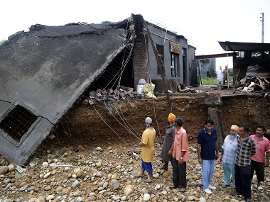 Jammu: Four persons died and three others suffered injuries in flash floods following incessant rains in Jammu region, officials said on Tuesday. Over two dozen houses and scores of vehicles have been damaged by the gushing waters. While two persons died in Udhampur district and two others were injured, one person each died in Jammu and Poonch districts of Jammu and Kashmir since Monday, they said. [caption id=“attachment_4964631” align=“alignleft” width=“380”] People stand near a building damaged during the flash floods in Jammu. PTI[/caption] One pilgrim was injured in a landslide on the track to Mata Vaishnodevi shrine in Katra belt of Reasi district on Tuesday. 45-year-old Babu Ram was washed away in a drain and his body was recovered on Monday, officials said adding 22-year-teacher Dimple Devi died as a wall collapsed following floods in Udhampur. Another local identified as Sanjay Kumar slipped in a drain during flash floods in bus stand area in Jammu last night and his body was recovered, they said. 24-year-old Javed was washed away in flash floods in Mani belt of Poonch district on Monday, they said adding his body has been recovered. As per reports two dozen houses and structures suffered damaged due to rains, flash floods and landslides in Jammu, Kathua, Poonch, Rajouri, Udhampur and Reasi districts and scores of vehicles have been damaged in Jammu city. The region has been witnessing heavy rainfall during the night time for the past three days. Many important roads in Janipur, New Plot and Talab Tillo areas of Jammu city have been flooded. In several colonies particularly in Janipur and Kangrial, flood waters have entered houses causing huge problems to the people. Kangrail village on the outskirts of Jammu is one of the worst-hit areas. The flood water entered many houses in the area, damaging household items and electronic equipment. Trees and electric poles have been uprooted in several areas and several vehicles washed away in New Plot area. The worst-affected areas are Keran, Kangrail, Raipur, Kot-Bhalwal, Burn and Ghrota, Paloura, Channi Himmat and other low-lying areas where the rainwater entered houses. Chenab, Tawi and Basantar rivers were overflowing. Power and water supply to most parts of Jammu city and other rural areas has been affected badly since last evening while water and mud has entered many houses and shops in Old Janipur, Bhawani Nagar, Naseeb Nagar, Shant Nagar, Paloura, Lower Roop Nagar, Muthi and several other areas.