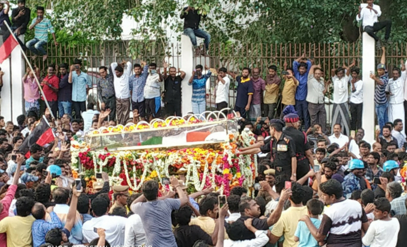 Karunanidhi funeral LIVE Updates: DMK patriarch Karunanidhi was laid to rest at Marina Beach with full State honours on Wednesday as his family members and follower bid farewell. Tamil Nadu governor Banwarilal Purohit, state minister D Jayakumar and Union minister Pon Radhakrishnan paid tribute to Karunanidhi at Marina beach. The chief minister and deputy chief minister are not present at the last rites ceremony. Congress president Rahul Gandhi and JD(S) leader HD Deve Gowda are among the thousands present at the ceremony to pay final tributes. The late DMK chief will be buried with full state honours. Having set off close to two hours ago from Rajaji Hall, Karunanidhi’s mortal remains are nearing Anna memorial. Meanwhile, Over 30 DMK workers tonsured their heads to express their grief in the passing of M Karunanidhi in Srivilliputhur in Virudhunagar district. Earlier, two people, including a 60-year old woman, reportedly lost their lives while 33 were injured in the stampede at Rajaji Hall. Congress president Rahul Gandhi, Samajwadi Party leaders Akhilesh Yadav and RJD’s Tejashwi Yadav pay tribute to Karunanidhi. Army has been called in to protect Kalaignar Karunanidhi’s body at Rajaji Hall in Chennai. The police estimate that over three lakh people are in and around the venue, with more coming in by the hour. More battalions of city police have been deployed to Rajaji Hall. DMK leader MK Stalin addressed the cadres gathered at Rajaji Hall and asked them to maintain calm and not do adventurous stunts as crowd continues to swell at the venue. 40 people have been injured in the stampede at Rajaji Hall in Chennai where Karunanidhi’s mortal remains have been kept for public viewing, according to India Today. Congress President Rahul Gandhi has landed in Chennai to pay last respects former Tamil Nadu chief Minister to M Karunanidhi. Meanwhile, the Tamil Nadu govt said that it will not challenge Madras High Court’s decision, to allow burial of Kalaignar at Marina Beach, in Supreme Court. The funeral procession of M Karunanidhi is expected to leave Rajaji Hall at 4.30 pm and make its way to Anna Memorial. Karunanidhi funeral; LIVE updates: The law and order situation is getting chaotic at Karunanidhi’s burial site at Marina Beach as supporters have thronged the venue in large numbers forcing the police to resort to lathicharge. West Bengal Mamata Banerjee says she called Narendra Modi on Tuesday to express disappointment over Tamil Nadu government’s denial to bury Karunanidhi’s body at Marina Beach in Chennai. TMC leader Derek O’Brien will represent the party at the ex-DMK chief’s funeral. Both Lok Sabha and Rajya Sabha were adjourned for the day due to the passing away of former Tamil Nadu chief minister M Karunanidhi. The Madras High Court has approved the plan for Kalaignar memorial within the premises of Anna Memorial at Marina Beach in Chennai. Madras High Court allows Kalaignar to be buried near Anna Memorial at Marina Beach in Chennai. Also, orders the state government to build a memorial for Kalaignar. Prime Minister Narendra Modi has reached Chennai’s Rajaji Hall where he would pay his last respects to the late DMK chief and former Tamil Nadu chief minister M Karunanidhi. Prime Minister Modi arrives at Chennai airport. He will be taken via helicopter to the INS helipad from where he will proceed by road to Rajaji Hall. He is accompanied by Minister of Defence Nirmala Sitharaman. The Madras High Court on Wednesday assured speedy decision in the case against denial of burial land by Tamil Nadu government at Marina beach for DMK chief M Karunanidhi. The government lawyers said that the demand for space in Marina is against the very philosophy of Kalaignar. This is trial by media, they say. Judge S S Sundar questions the government about the direction of their arguments. He says, the government mentioned that there are legal complications to the issue but instead of explaining what these are, the government is making contrary statements. Tamil Nadu government’s lawyer says, “DMK is pursuing political agenda by filing this case. DK Chief Periyar was the tallest leader of Dravidian movement. Was he buried at Marina beach?’ The High Court dismissed all pending petitions challenging burials on the Marina Beach in Chennai as it resumed hearing on a petition by the DMK seeking allotment of space at the famous beach for laying to rest its leader M Karunanidhi. The first bench comprising Acting Chief Justice Huluvadi G Ramesh and Justice S S Sundar dismissed the petitions, including one by social activist Traffic Ramaswamy, when it resumed hearing this morning. “You (Tamil government) have announced state mourning, why not give land for burial?” DMK lawyer asked the state government. There’s no prohibition under central government protocol to allot land at Marina beach for ex-chief ministers. Tamil Nadu government in its counter affidavit says that DMK chief Karunanidhi himself didn’t allot land for former chief minister Janaki Ramachandran after understanding the protocol manual when Karunanidhi was the chief minister. DMK’s lawyer says “Anna, who is the founder of DMK, used to say my life and soul is Karunanidhi. Burying Karunanidhi next to Gandhi Mandapam cannot be termed as a decent burial.” The Tamil Nadu government lawyers said that the decision about the burial need not be delivered today on an emergency basis. However, the court can decide to deliver the judgment whenever it pleases, they said. The judges intervened to say under the circumstances it is not possible to delay the judgement any longer and it will have to be arrived at soon. All five petitions filed against the allocation of burial space at Marina have been withdrawn by the litigants. Government lawyers argue that the courts cannot interfere in the state’s decision in this regard. They cite the case of former chief minister K Kamaraj who isn’t buried at Marina. Government lawyers 