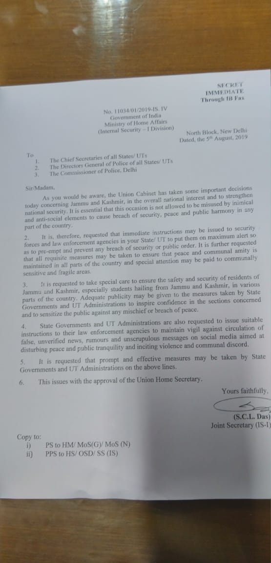 Jammu and Kashmir News LATEST Updates: Home Minister Amit Shah claimed in the Rajya Sabha that Article 370 “crushed democracy” in Jammu and Kashmir and the Centre was revoking the Article to end bloodshed in the state. Meanwhile, the Ministry of External Affairs briefed the envoys of the US, UK, Russia, China, and France, on the developments related to the scrapping of Article 370. According to a report by The Print, the Centre had decided in February to scrap Article 370. It was because of the 14 February Pulwama attack that the Narendra Modi government decided to postpone the move. The report quoted an MHA source source as saying that a decision to announce the plan ahead of the Lok Sabha election was taken during a meeting between then finance minister Arun Jaitley, BJP chief Amit Shah, former external affairs minister Sushma Swaraj and ex-home minister Rajnath Singh. NSA Ajit Doval is expected to visit Kashmir on Monday, along with other senior security officials, to review the situation on ground. In Rajya Sabha, Samajwadi Party’s Ram Gopal Yadav asked why the Central government did not consult stakeholders. He asks why the State had to be split into Union Territories. He asked the AAP why they were supporting the resolution and sought to know why Home Minister Amit Shah was in a hurry to pass the resolution. The BJP-led Union government has been continuously treating Parliament as a rubber stamp and undermining the sanctity of Supreme Court judgments as well. Article 370(3) says that President may, by public notification, declare that Article 370 ceases to operate provided that recommendation of Constituent Assembly is necessary. But Supreme Court had earlier stated that Article 370 has become a permanent part of Constitution of India, cannot be abrogated and since Constituent Assembly doesn’t exist anymore, the mandatory provision of getting its recommendation cannot be fulfilled. In Parliament, Amit Shah argued that Constituent Assembly means the State Assembly of Jammu and Kashmir and since Jammu and Kashmir is under President Rule right now, all powers of State Assembly will vest with Parliament. Even so, the President brought out the notification even before Parliament, which includes both Houses, could recommend the same, reducing the passage of this resolution to a mere formality. “Pakistan strongly condemns and rejects the announcements made today by the Indian Government regarding the “Indian Occupied Jammu and Kashmir”. The “Indian Occupied Jammu and Kashmir” is an internationally recognised disputed territory. No unilateral step by the Government of India can change this disputed status, as enshrined in the United Nations Security Council (UNSC) resolutions. Nor will this ever be acceptable to the people of Jammu and Kashmir and Pakistan. As the party to this international dispute, Pakistan will exercise all possible options to counter the illegal steps. Pakistan reaffirms its abiding commitment to the Kashmir cause and its political, diplomatic and moral support to the people of “Occupied Jammu and Kashmir” for realisation of their inalienable right to self-determination,” said the official statement from Pakistan Ministry of Foreign Affairs. Historian Ramachandra Guha likened the current President’s move to one of his predecessor’s — that of Fakhruddin Ali Ahmed. “President Kovind does a Fakhruddin Ali Ahmed,” Guha tweeted. Ahmed was the President when Emergency was imposed by the then prime minister Indira Gandhi. On the night of 25 June,1975, Fakhruddin Ali Ahmed declared a state of Emergency after a hush hush meeting with Indira Gandhi earlier in the day. Emergency was approved without discussion with the Parliament or even the Cabinet of ministers. Many years on, Ahmed has been criticised as acting like a mere ‘rubber stamp’ for the whims of Indira Gandhi. Guha hinted President Kovind has just done the same. Slamming the NDA government for passing the resolution on Article 370 in Rajya Sabha, MDMK chief Vaiko said, “You have played with the sentiments of people of Kashmir. When additional army personnel were deployed there, I was worried. Kashmir should not become Kosovo, East Timor and South Sudan. I am opposing this Bill (Article 370). This is a day of shame, shame, shame…this is murder of democracy.” Indian Army and the Indian Air Force have been put on high alert today following the scrapping of Article 370 and other decisions announced by Government in Parliament. While Shiv Sena and a few other NDA allies have welcomed the decision, JD(U) has vehemently opposed it. Soon after home minister Amit Shah announced in Rajya Sabha that the state of Jammu and Kashmir will be bifurcated, revoking Article 370, and the Jammu and Kashmir region will be an Union Territory with a legislature, political leaders from across the spectrum reacted to it. Calling it a “monumental decision”, former finance minister Arun Jaitley said, “The decision of the government will help the people of J&K the Most. More investment, more industry, more private educational institutions, more jobs and more revenue. While the Article 370 and Article 35A decision benefits the residents of J&K the most, the Kashmir regional leaders feel that they will not be able to whip up the fake issue of ‘sentiment vs. benefit’ to the people.” Livid over the reports of Indian government revoking Article 370, former CM Mehbooba Mufti asked What did Jammu and Kashmir get for acceding to India. According to the former chief minister, the move by the Centre will cause probably another “partition along communal lines”. “Our special status isn’t a gift bestowed upon us. Its a right guaranteed by the same in parliament. A contract entered into by J&K leadership & India. Today the very same contract has been violated,” Mufti tweeted. Home Minister Amit Shah announces that Article 370 that grants Jammu and Kashmir special status will be revoked amid major