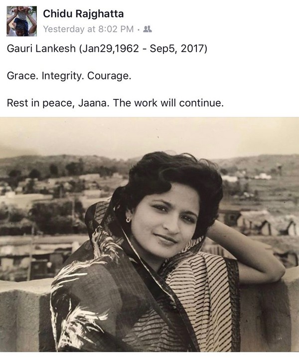 Senior journalist Gauri Lankesh was shot dead at her residence in Rajarajeshwari Nagar in Bengaluru on Tuesday evening, reports said. Times Now reported that assailants pumped three bullets into Gauri who had apprehended threat to her life. The News Minute further stated that an unidentified man shot her when she was getting out of her car to open the gate of her house. The report also quotes DG RK Dutta saying,“We got the information just now. She was returning home. Her home is in Ideal Home Layout in Rajarajeshwari Nagar. She got down from her car and she was opening the gate when she was shot. The details are sketchy, and we are yet to know who has done it. The bullets killed her on the spot, reports said. However, it would be too early to comment on it as a report from India Today said that four men entered her house and attacked her. Gauri, a well-known critic of the Right wing and Hindutva politics, was the editor of weekly tabloid magazine Gauri Lankesh Patrike. Apart from this, she was also a columnist for various newspapers and an activist. Assailants pumped three bullets into Gauri who had apprehended threat to her life, according to media reports. The News Minute further stated that an unidentified man shot her when she was getting out of her car to open the gate of her house. The shots killed her on the spot, reports said.