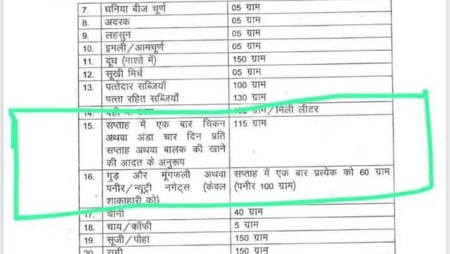 The minister said there must have been an error/printing mistake in the gazette notification. Firstpost[/caption] When reporters asked Mishra about the notification on Sunday, he said, this will not be allowed in Madhya Pradesh. There is confusion on this issue. There is no such proposal pending with the state government and such a thing will not be implemented in the state." The notification states that every child care institution shall strictly adhere to the minimum nutritional standard and diet scale suggested as specified below. In the gazette notification, the food items mentioned in the list include 115 grams of chicken once a week and eggs four days in a week, besides other food items like dal (pulses), rajma, chana, milk and vegetables. Read all the Latest News