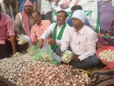 Anil Yadav (in green scarf), Madhya Pradesh general secretary of the Bhartiya Kisan Union during a protest. Image: 101Reporters[/caption] Tussle between farmers and traders Mandi officials at Karond said 8,000-10,000 quintals of vegetables arrive here every day, throwing light on the huge earning difference between traders and farmers of nearby areas. Farmers said their profits are negligible even when there is a rise in vegetable prices since the gain is mostly usurped by traders in connivance with government officials. Kushwah grows soybean as the primary crop and cultivates vegetables at other times of the year. But selling his primary crop has been a distressing exercise. Four months after widespread agrarian protests, the Shivraj Singh Chouhan government in the state had launched the