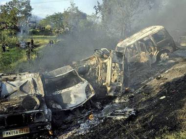 Images from Sunday’s protest against the United Naga Council (UNC)’s indefinite economic blockade. Imphal East: Angry people had set on fire vehicles in Imphal East district but no casualties were reported .PTI[/caption] Mao, the former UNC president, who is at present looking after the affairs of the Council after the arrest of its senior leaders, alleged that Chief Minister Okram Ibobi Singh was trying “cheap tricks ahead of polls to hide the government’s incompetency”. Claiming that violence has taken place in several areas of Manipur, Convener for Joint Naga Civil Societies, Lakpachui Siro, accused the Congress-led state government of disrupting peace by creating seven new districts for “electoral gains” ahead of the assembly elections next year. “The state government is going to upgrade Sadar Hills and Jiribam regions to full-fledged districts without consulting the Nagas who inhabit the areas. Precious lands, which belong to them, are being snatched away and there are unrest in the state,” he said. The UNC, which has imposed an economic blockade on NH-2 (Imphal-Dimapur) and NH 37 (Imphal-Jiribam) that serve as lifelines for the landlocked state, said Manipur Chief Minister Okram Ibobi Singh decided to create seven new districts “without consulting” the Nagas who, they said, are the most important stakeholders. The UNC has demanded immediate release of its President Gaidon Kamei and Publicity Secretary Stephen lamkang who they said have been arrested “arbitrarily”. The UNC has accused Meiteis of creating unrest in the state by killing innocent people, saying Meiteis are not only torching vehicles, burning down houses and looting Nagas, but also attacking places of worships in the state. A tripartite talk involving a delegation each from the Manipur government, the UNC and the Ministry of Home Affairs was scheduled to be held in Delhi on November 15 on the current situation of the state but the state government did not send anyone to attend that meeting, Siro said. In a gazette notification issued on 9 December, the state government announced the creation of seven new districts for administrative convenience, taking the total number of districts in the state to 16. The decision has sharply divided the state’s three main communities which are Meiteis, Nagas and Kukis. Though Meitei and Kuki groups have welcomed the move, the UNC has been protesting against it. The UNC claim that the decision would bifurcate ancestral lands of Nagas in Manipur. The Chief Minister said the move was aimed at addressing a long-standing demand of the majority Meitei community and the minority Kukis. The ongoing economic blockade by UNC launched on 1 November against the state government’s proposed move to create the new districts of Jiribam and Sadar Hills has resulted in black marketing of essential goods. Out of the nine districts of Manipur, four districts — Imphal East, Imphal West, Thoubal and Bishenpur — are valley districts, and the five rest — Ukhrul, Senapati, Tamenglong, Chandel and Churachandpur — are hill districts. The five hill districts are tribal districts. Valley districts are smaller with a high density of population but hill districts are sparsely populated. On Monday, the situation in Manipur remained tense with violence spreading to Senapati district where miscreants torched two vehicles even as the Chief Minister appealed for peace among different ethnic groups of the state. Indefinite curfew continues to remain in force in Imphal East district where mobile data services were suspended since Sunday to prevent spread of rumours. This will be in force till December 25.