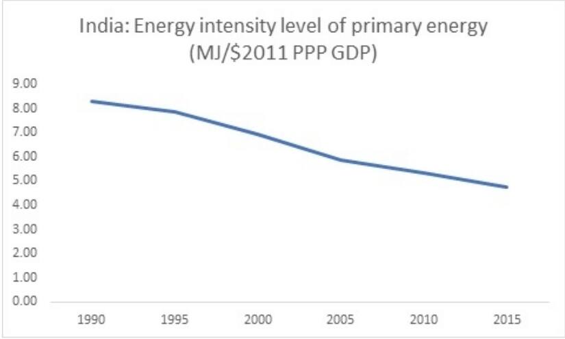 .jpg)One reason for this is that as India has developed, it has not developed quite like its planners expected. The economy has tilted more towards services than manufacturing, often consuming less energy. The other reason is the key role has been played by technology to provide the same value using less energy. A shining example of this is the 326 million LED bulbs distributed under UJALA, which helped save about 8GW of peak demand (or 5 percent of peak avoided). If India continues down the path of energy efficiency (especially in air-conditioning), the energy intensity of its GDP is expected to fall further.