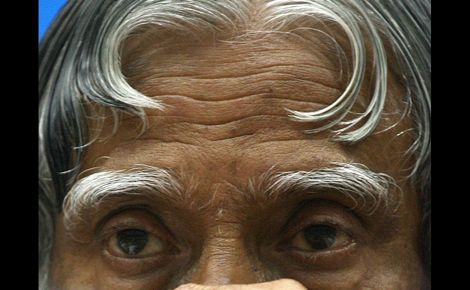 Former Indian President, APJ Abdul Kalam gestures during his visit to the LD Institute of Indology in Ahmedabad on November 11, 2011. AFP