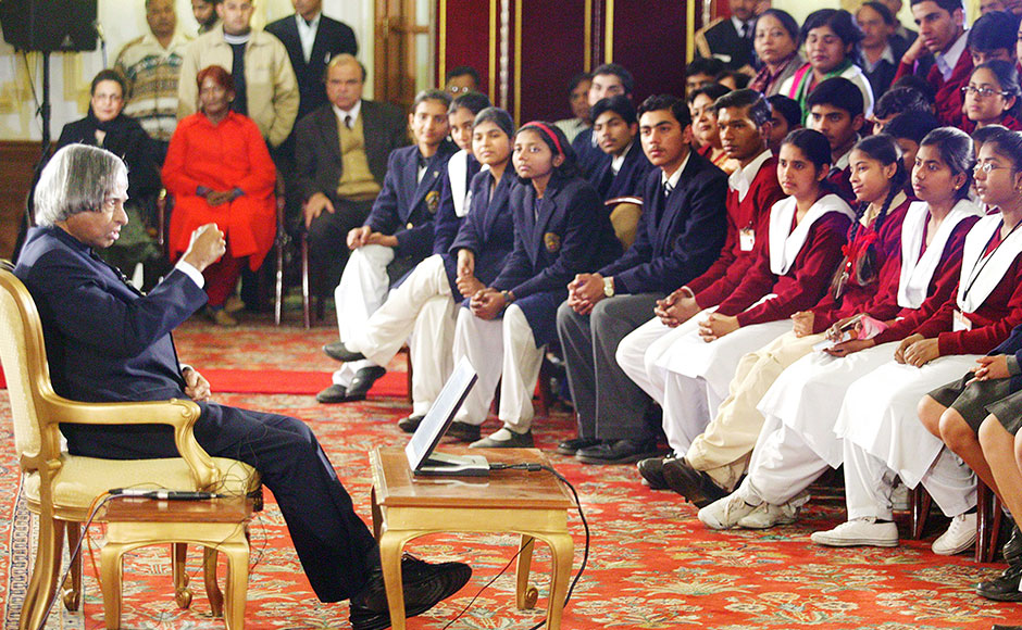 Dr. APJ Abdul Kalam, talks with school students at Rashtrapati Bhavan, presidential palace, on the eve of India’s Republic Day, 25 January, 2007. AFP