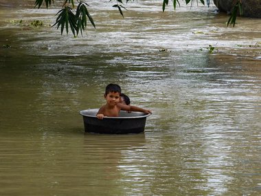 A boy sits in a container to move across a flooded village in Morigaon district of Assam. PTI[/caption] A population of 17,96,535 has been affected by floodwaters in 55 blocks of nine districts — Sheohar, Sitamarhi, East Champaran, Madhubani, Araria, Kishanganj, Supaul, Darbhanga and Muzaffarpur. The report added that about 11 lakh people have been affected in the worst-hit Sitamarhi district, followed by 5 lakh in Araria. It said 13 teams of National Disaster Response Force (NDRF) and State Disaster Response Fund (SDRF) have been deployed to carry out relief and rescue operations in the affected districts. The authorities have also opened 152 relief camps giving shelter to 45,053 people, while 251 community kitchens have been made functional. Chief Minister Nitish Kumar held a high-level meeting to review the flood situation. Later, he conducted an aerial survey of flood-affected areas of Darbhanga, Madhubani, Sheohar, Sitamarhi and East Champaran districts. Assam The flood situation in North East India took a turn for the worse with