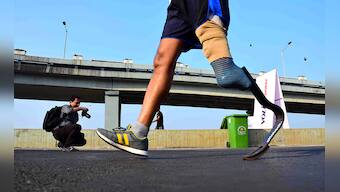 A physically challenged athlete runs during the Standard Chartered Mumbai Marathon 2016 in Mumbai on 17 January. Solaris images