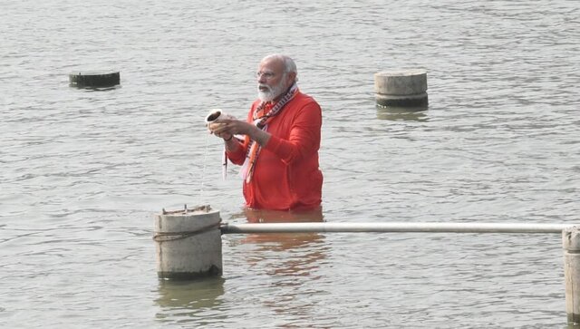Varanasi, Uttar Pradesh: Prime Minister Narendra Modi on Monday took a holy dip in the River Ganga in Varanasi. The prime minister is on a two-day visit to his Lok Sabha constituency. Adorning a saffron-coloured attire, Modi offered flowers to the holy river and chanted mantras on a rosary. He also took water from the Ganga for the ‘jalaabhishek’ at the Kashi Vishwanath Temple. He will inaugurate the Kashi Vishwanath Dham at around 1.20 pm after offering prayers at the iconic temple situated at the Lalita Ghat where he arrived on Alaknanda cruise, a double-decker boat. The prime minister will also witness the Ganga Aarti while on-board a Ro-Ro Vessel at around 6 pm. On his arrival in the city earlier on Monday, the prime minister offered prayers at Kaal Bhairav Temple. Prime Minister Narendra Modi was given a rousing welcome as soon as he reached Varanasi as they showered flower petals and chanted slogans of ‘Modi, Modi’ and ‘Har Har Mahadev’. During the two-day visit, the prime minister will also participate in a conclave of chief ministers of Assam, Arunachal Pradesh, Goa, Gujarat, Haryana, Himachal Pradesh, Karnataka, Madhya Pradesh, Manipur, Tripura, Uttar Pradesh and Uttarakhand, along with deputy chief ministers from Bihar and Nagaland. The conclave will provide an opportunity to share governance-related best practices and is in line with the prime minister’s vision of furthering team India’s spirit. Follow all LIVE updates on Prime Minister Narendra Modi in Varanasi here Read all the Latest News , Trending News , Cricket News , Bollywood News , India News and Entertainment News here. Follow us on Facebook, Twitter and Instagram.