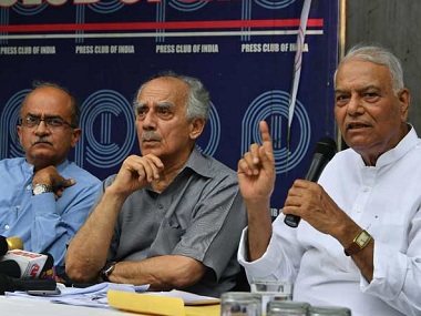 New Delhi: Alleging Narendra Modi’s “personal culpability” in the Rafale jet purchases, former BJP Ministers Yashwant Sinha and Arun Shourie on Tuesday accused the Prime Minister of “compromising national security” by unilaterally finalising the deal, shunning every rule of military procurement. Addressing the media, both Sinha and Shourie said the government had “spun a web of lies to protect Modi’s culpability in the largest defence scam” the country had ever seen. The two dismissed all the explanations given by the Modi government and the ruling BJP in justifying the deal as “blatant lies” and said Modi “usurped the authority” and unilaterally cancelled the original deal for the sake of his “crony capitalists”. [caption id=“attachment_5166041” align=“alignleft” width=“380”]