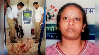 Left: Police inspect the Corporation Bank ATM in Bangalore where a woman was attacked on Tuesday. Right: Corporation Bank Employee Jyothi Uday who was attacked by a miscreant in an ATM kiosk. PTI