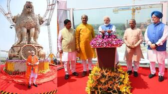 New Delhi: Prime Minister Narendra Modi on Monday unveiled the national emblem cast on the roof of the new Parliament building.