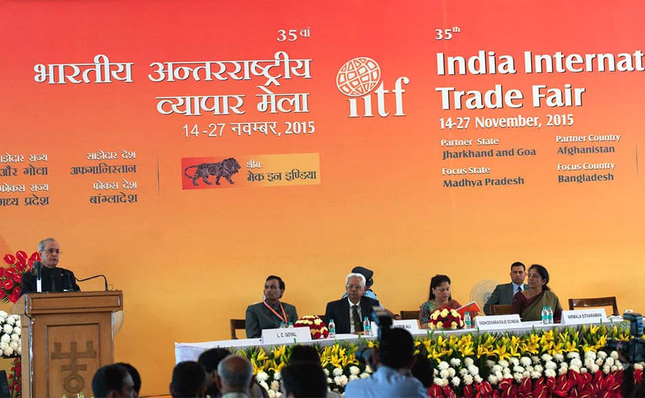 President Pranab Mukherjee at the 35th India International Trade Fair. Image Credit: Naresh Sharma/ Firstpost[/caption] [caption id=“attachment_2506536” align=“alignleft” width=“940”]