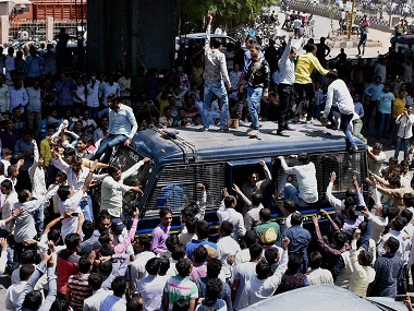 Mehsana: A massive rally of the Patel community at Mehsana town in Gujarat demanding reservation and release of their jailed leaders on Sunday turned violent as police used lathicharge and fired teargas shells on the agitators who allegedly engaged in stone-pelting. Patel protesters had gathered at Modhera crossroad as part of the `Jail Bharo’ agitation announced by the Sardar Patel Group (SPG), one of the prominent groups seeking OBC quota for the Patel community. SPG chief Lalji Patel received head injury during the face-off with the police. While the police claimed they resorted to lathicharge only after some persons started throwing stones at the police vehicles, Lalji Patel alleged that Patel agitators were targeted without any provocation. [caption id=“attachment_2733786” align=“alignleft” width=“380”]  Members of Patidar community during the “Jail Bharo Andolan” to demand the release of Convener of Patidar Anamat Aandolan Samiti Hardik Patel in Surat on Sunday. PTI[/caption] “Our protest was peaceful as announced earlier. However, police suddenly hit me and some of our members when we were walking ahead of the procession. I was hit on head. You can see the blood on my face. We were beaten up without any provocation,” said Patel, who along with some other agitators were detained by the police subsequently. In-charge DGP of Gujarat PP Pandey claimed the situation deteriorated only after some people resorted to violence. “Police always work to establish peace. The gathering was peaceful initially. However, the situation deteriorated only after some persons resorted to violence and damaged property. I have already sent additional force to handle the situation,” Pandey said. Meanwhile, SPG as well as Hardik Patel-led Patidar Anamat Andolan Samiti (PAAS) have given a call for `Gujarat Bandh’ on Monday. “Our Patel brothers were brutally beaten up during the peaceful rally today. Lalji and few other SPG leaders received grievous injuries in the police lathicharge. We condemn this use of excessive force by police and have given a call for Gujarat bandh tomorrow (Monday),” said SPG spokesperson Purvin Patel, adding that PAAS too supported tomorrow’s bandh. Thousands of Patel community members gathered at Modhera crossroad on the outskirts of the city on Sunday to court arrest on a mass scale, pressing for reservation and release of Hardik Patel and three of his aides who are in jail. Large number of police, with water canons and teargas shell guns, were already deployed at the crossroad. “Police first used the water canon to disperse the mob, as the mob attacked some police vehicles. Teargas shells were also fired as the mob started throwing stones. It also set ablaze some private vehicles. The operation to control the situation is still on,” said a police control room official. Health Minister and spokesperson of the Gujarat Government Nitin Patel appealed to the protesters to maintain peace. “Patel leaders (Lalji Patel and others) had earlier promised that even if he is arrested, others will stage peaceful protest. However, violence took place after some people incited others. I appeal to them to maintain peace as all the problems can be solved through dialogue,” the minister said.