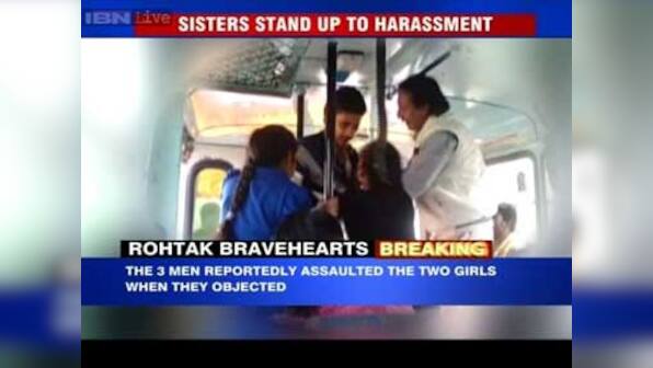 The Haryana government today announced that it would honour two sisters, who single-handedly took on three alleged molesters in a moving bus. The two girls will be honoured on Republic Day where they will be given cash awards. Haryana Chief Minister Manohar Lal Khattar in a statement, said that both the girls had shown indomitable courage and bravery by opposing the misdemeanour of three youth who tried to molest them in a moving bus of Haryana Roadways at Rohtak, adding effective steps would be taken to ensure security of women passengers. Taking serious note of this incident, the Haryana government has asked state Director General of Police (DGP) and state transport department to take steps for ensuring safety and security of passengers especially women travelling in the Haryana roadways buses. [caption id=“attachment_1829383” align=“alignleft” width=“380”]  Image from IBN live[/caption] The bus drivers and conductors have also been directed to make sure that such incidents do not occur in future, it said. The two college-going sisters had confronted three eve-teasers inside a moving bus, with one of the girls even hitting the youths with her belt, even as passengers remained mute spectators. The entire incident, recorded by a passenger on mobile phone, went viral both on television and social media. All three molestors – Kuldeep, Mohit and Deepak - were later arrested. “All the girls should do what these sisters did. They did well. But it is sad that none of the other passengers came to their help. The society has to change its mindset and people should stop being mere onlookers when such incidents take place,” Union Minister Uma Bharti said, reacting to the incident. “What the girls wear, does not matter. People should come together and ensure that women are respected and their dignity is maintained,” she said. National Commission for Women chairperson Lalitha Kumarmangalam too praised the girls. “I would like to congratulate the girls and ask the authorities to take appropriate action. Few girls have the guts to take on the molesters. The government should take action. I would appeal to every Indian to come forward,” she said. The parents of the two girls lodged an FIR with Haryana police against the three youths, adding that the molesters got down at the Kansla village in Rohtak. The victims in their complaint alleged that they were “teased” by some youths in a Haryana Roadways bus when they were going to their college on Friday. When the victims objected, one of the accused started beating them up. The father of the two sisters alleged that there was pressure from the panchayat that the girls should withdraw the complaint.