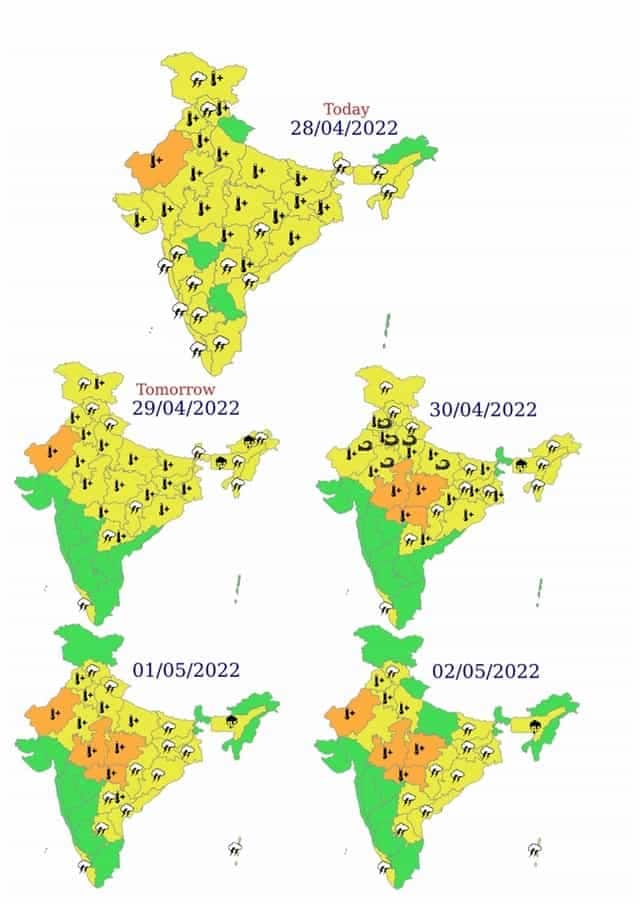 This year India experienced the earliest summer onset in March which is supposed to be one of the pleasant months of the year but turned out to be the hottest ever in 122 years and broke 56 all-time records for a heatwave. The trend of unusually hot weather continues to prevail throughout April right upto the end of the month. Many parts of India are already observing their peak summer level temperatures and heatwaves which usually are bound to occur late in May. First time ever in recorded history, the temperature in the month of April crossed 45°C in Gurgaon in Haryana. Today on 28 April, 2022 IMD’s Observatory in Gurugram recorded 45.6°C maximum temperature breaking the previous all-time record of 44.8°c from 28 April 1979. Today Delhi recorded the highest maximum temperature of the year so far. With 43.5°c, Safdarjung recorded its highest April Temperature after 2010. As the heatwave intensifies it is expected to get close to 44.0 to 44.5°c on Friday and may get very close to the all-time record of April which is 45.6°C from the year 1941. As the sweltering heatwave swept across the country here are the Top 10 Hottest Stations in India on 28 April as per the data from the Indian Meteorological Department automatic weather stations and manual observatories: Dholpur 46.6°C Banswara 46.3°C Chitrakoot 46.0°C Sports Complex(Delhi) 46.0°C Prayagraj 45.9°C Kanpur IAF 45.8°C Mungeshpur 45.8°C Daltonganj 45.8°C Ganganagar 45.7°C Hathras 45.7°C Many stations across different states in India also crossed 45 degrees on Thursday as per IMD data: Rajasthan Dholpur 46.6°C Banswara 46.3°C Dholpur Agri 45.8°C Ganganagar 45.7°C Karauli 45.6°C Hanumangarh 45.6°C Churu 45.5°C Alwar 45.1°C Bikaner 45.0°C Dungarpur 45.0°C Baran 45.0°C Sawai Madhopur 45.0°C Uttar Pradesh Chitrakoot 46.0°C Prayagraj 45.9°C Kanpur IAF 45.8°C Hathras 45.7°C Agra 45.6°C Jhansi 45.5°C Haryana Sirsa AWS 45.7°C Gurgaon 45.6°C Balsamand 45.6°C Tohana 45.3°C Ellanabad 45.2°C Mahendragarh 45.0°C Delhi Sports Complex 46.0°C Mungeshpur 45.8°C Najafgarh 45.4°C Pitampura 45.2°C Ridge 45.1°C Maharashtra Jalgaon 45.6°C Akola 45.4°C Brahmapuri 45.2°C Wardha 45.1°C Madhya Pradesh Rajgarh 45.7°C Nowgong 45.6°C Khargone 45.2°C Khandwa 45.1°C Gwalior 45.0°C Ratlam 45.0°C Damoh 45.0°C Jharkhand Daltonganj 45.8°C Gujarat Kandla AP 45.0°C • The India Meteorological Department on 28 April declared a heatwave alert for most parts of North and Central India in the next five days and for East India in the next three days. The department also gave a forecast that the maximum temperature is expected to rise by at least 2°C in most parts of North West India during next two days. • Statewise heatwave is expected over various parts of Rajasthan, Maharashtra, Uttar Pradesh, Madhya Pradesh, Punjab, Haryana, Chandigarh, Delhi, Madhya Pradesh, Gujarat till 2 May with severe heatwave conditions at isolated places in west Rajasthan. In Bihar, Jharkhand, Odisha, West Bengal, Telangana and Chhattisgarh the heatwave is forecasted to remain till 30 April. The maximum temperatures in Rajasthan, Uttar Pradesh, Maharashtra and Madhya Pradesh are already crossing 45°C and the meteorological department had forecasted a further rise in temperature by 2°C. There is a possibility that the maximum temperature might reach 47 to 48°C in some parts of Rajasthan, mainly in the Thar desert where summer highs of 48°C are common. Moreover, this year the summer arrived very early and is already at record-breaking levels in April. [caption id=“attachment_10611751” align=“alignnone” width=“640”]  Yellow and Orange Heatwave Alerts issued by Indian Meteorological Department[/caption] Let’s have a look at the reasons behind the record-breaking heatwave condition in India: 1) Absence of Strong Western Disturbance: From 1 March till 28 April, India recorded 45.4mm rainfall against the climatological normal of 66.3mm. The departure from normal rainfall is -32 per cent. If one looks at the regional data, northwest India received a mere 9.9mm of rainfall against the normal of 77.0mm making the rainfall deficiency stand at -87 per cent. Similarly, Central India recorded 5.0mm rainfall against the normal of 16.6mm, deficient by -70 per cent. Both the regions are dependent on Western Disturbance for rainfall during the non-monsoon months and as the data suggests there is no significant Western Disturbance that impacted the region resulting in the relief in terms of rains remaining absent for most days. 2) The Anti-Cyclonic Circulation remained Dominant: On the synoptic-scale Anti-Cyclonic Circulation is an area of sinking air which results in the development of high pressure over a large geographical area. The area of high pressure experiences a small pressure gradient while the atmospheric pressure and air do not change rapidly and winds become gentle in nature. As the air starts sinking it warms up, leading to hot and dry weather for longer durations sometimes for the months. The pattern of Anti-Cyclonic Circulation is present in India on and off since mid-March. At present, the circulation is over the Arabian Sea and the outer ridges are expanding till West India and as a result, the brutal heatwave is back impacting various states. When is the relief from the heatwave expected? As per India Meteorological Department, a weak Western Disturbance will have a limited impact over Punjab, Haryana, Rajasthan and Delhi on 30 April, an isolated dust storm is possible but it will not provide relief from the scorching heat. Another moderate-intensity Western Disturbance is predicted to approach Western Himalayas around 2 May which might last up to 5 May and is likely to lead to enhanced dust storm and rainfall activities in North West India. This is likely to provide some relief from the heatwave in the region by early next week. On average, the month of May is said to be the hottest for the country and the relief with 